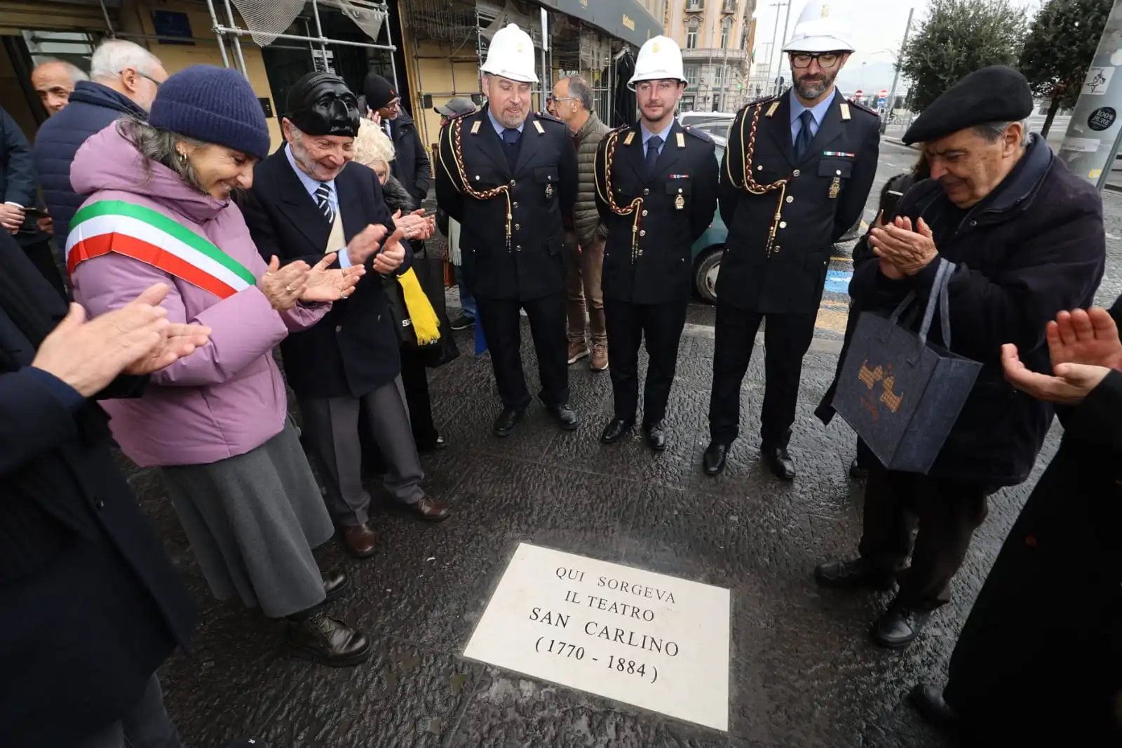 Napoli. Svelata in Piazza Municipio la targa che segna il luogo del leggendario Teatro San Carlino