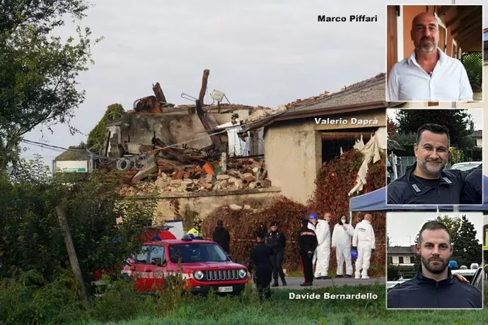 Così sono stati fatti arrivare sul posto carabinieri dei Reparti speciali e agenti dell’Uopi, specializzati in azione antiterrorismo. La casa era però già satura di gas e l’esplosione è stata innescata all’apertura della porta d’ingresso, che ha investito le forze dell’ordine e i vigili del fuoco che stavano facendo irruzione. L’intero casolare, di due piani, è crollato travolgendo i militari e gli agenti. Sul posto erano presenti anche i Vigili del fuoco che sono intervenuti immediatamente, ma per i tre carabinieri non c’è stato nulla da fare.