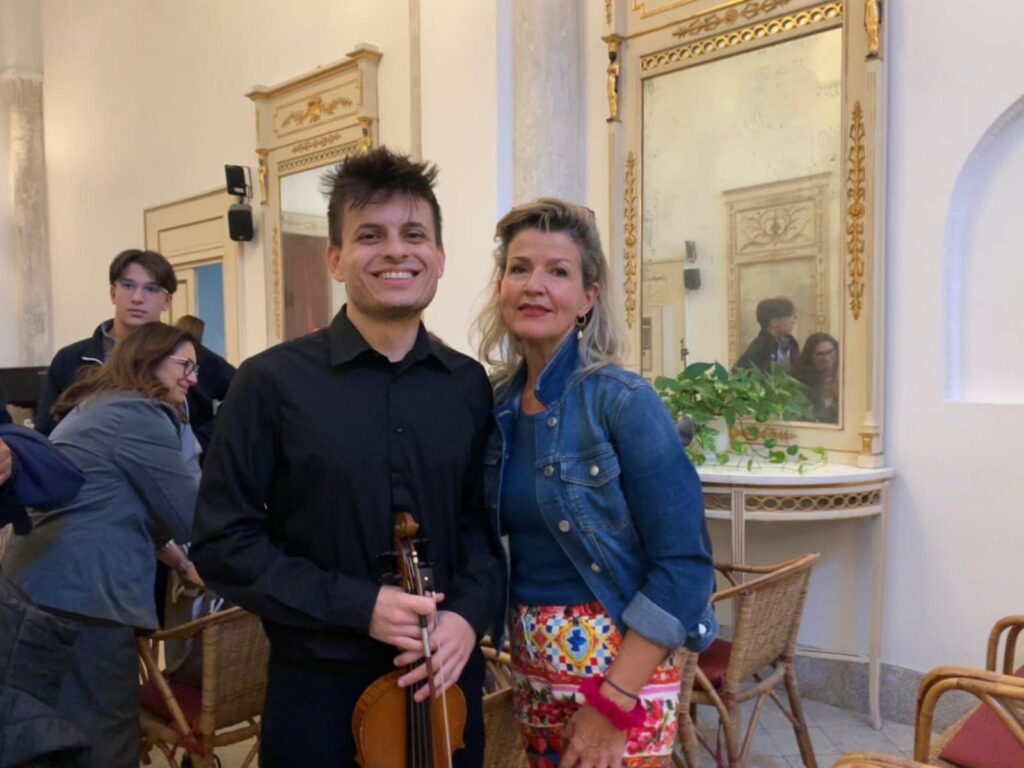 Alessandro Monaco, in foto, con la leggenda del violino Anne Sophie Mutter