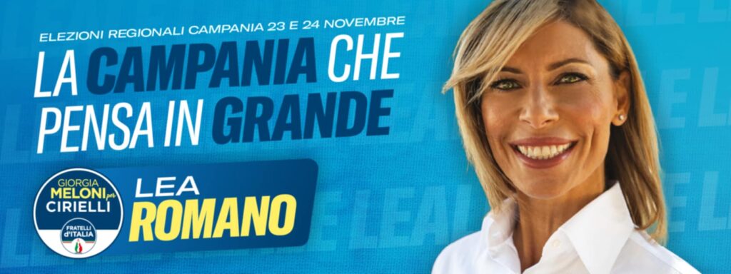 “Ho deciso di candidarmi per mettere la mia esperienza, le mie competenze e la mia energia al servizio della mia terra. La Campania merita una politica che ascolti e che agisca, che costruisca futuro e non si limiti a raccontarlo.” A dirlo è Lea Romano, classe 1979 bruscianese, imprenditrice e manager con una laurea in Conservazione dei Beni Culturali. Da sempre impegnata nel sociale e profondamente legata al proprio territorio. Lea Romano ha scelto di candidarsi al consiglio regionale della Campania del 23 e 24 novembre 2025, nella lista di “Fratelli d’Italia – Giorgia Meloni per Cirielli” a sostegno di Edmondo Cirielli, candidato Presidente della giunta regionale per il centrodestra.