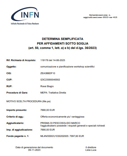 PROGETTO INFIN DI NAPOLI ‘PROGETTO ‘INTELLIGENZA ARTIFICALE APPLICATO ALLE SCIENZE NUTRIZIONALI’ – AFFIDAMENTO COMUNICAZIONE PRISMA: 7890€