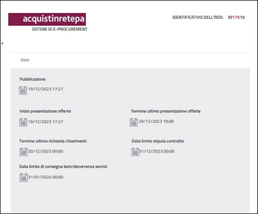 PROCEDURA AFFIDAMENTO SUL MEPA: APERTURA OFFERTE ORE 17 DEL 19 DiCEMBRE 2023 E CHIUSURA OFFERTA ALLE ORE 10,00 DEL 20 DiCEMBRE 2023