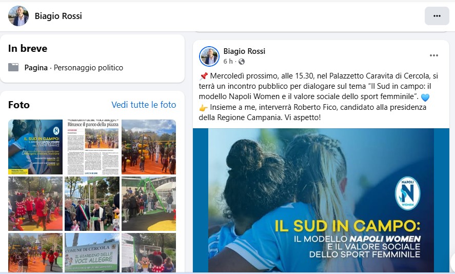 L’incontro pubblico è curiosamente organizzato dal Napoli Women, squadra di calcio femminile che milita in serie A, pare che sia di proprietà di un fondo milanese. Il tema dell’incotro è pubblico è : “Il Sud in campo: il modello Napoli Women e il valore sociale dello sport femminile”. L’appuntamento è fissato per le ore 15,30, ribadiamo di mercoledì 12 novembre, al Palazzetto dello Sport di Caravita nel complesso sportivo di Cercola.